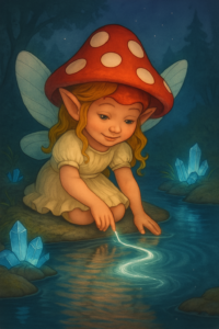 La curiosité tendre. Petite fée née de la baguette magique de Namaloue. Elle explore le monde avec émerveillement et soigne par les plantes et les tisanes enchantées.
